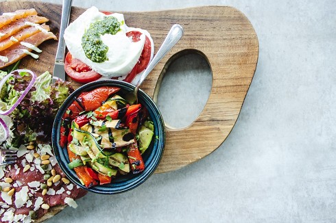 希臘飲食為典型的地中海風格,以簡單卻富有營養價值出名。受義大利、巴爾幹島各國、土耳其等國影響。希臘各類蔬果食物豐盛,盛產橄欖油、葡萄(酒)及起司。橄欖油品質優良且價格可親,以 Kalamata 省出產之橄欖油最為知名。近年來的醫學推崇希臘的飲食方式為良好且健康的飲食典範,使用大量橄欖油和蔬菜是希臘料理的一大特色,也因此大大降低希臘人罹患心腦疾病的比例。