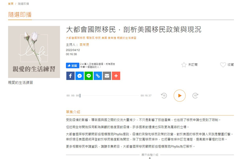 感謝ICRT專訪 感謝ICRT,於2022年4月12日,專訪大都會顧問Phyllis, 講解美國移民政策修法與類別簡介 .....