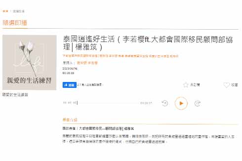 感謝ICRT,於2023年6月29日,專訪大都會顧問Phyllis, 解析移民泰國趨勢 MIC885107 · ICRT-20230629-.....